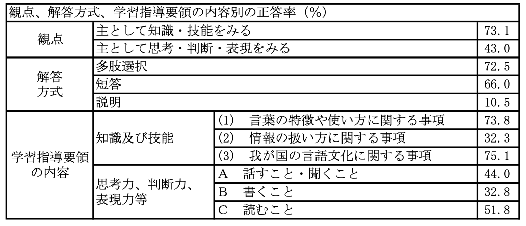 北海道教育委員会の報告書では、「北海道の中学生には、文章の概要や要点を捉えることや、